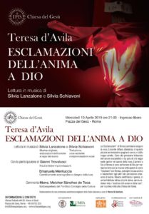 maggiori informazioniCHIESA DEL GESÙ TERESA D’AVILA, ESCLAMAZIONI DELL’ANIMA A DIO Lettura in musica: voce, “sculture di luce” e musica elettronica. Per la prima volta un evento multimediale alla Chiesa del Gesù.…